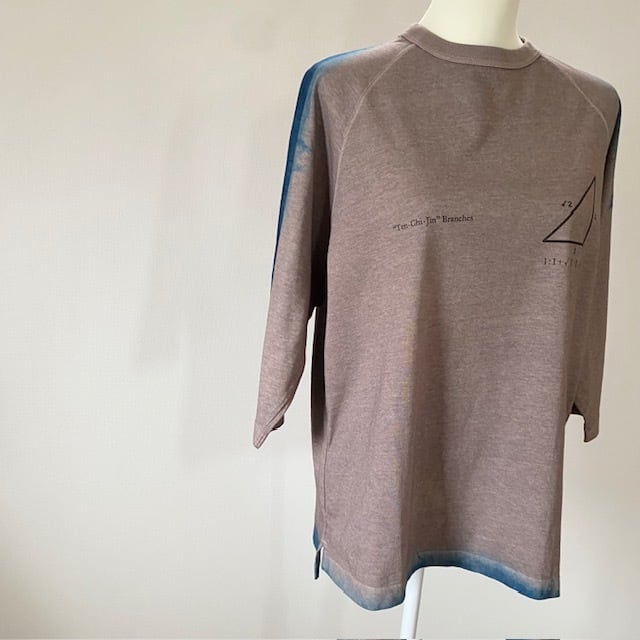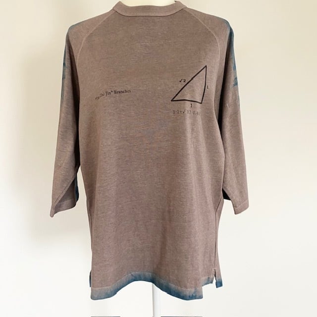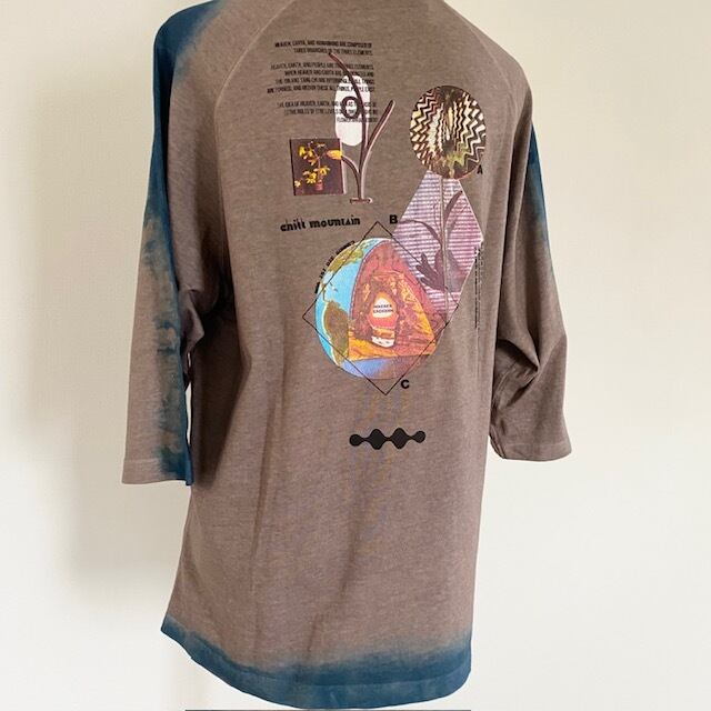 植物染を施したTシャツにオリジナルデザインをON! ナチュラルな風合いとデジタルなデザインの融合が 他では見られない素敵な1枚〇 ■染色材料■ アカメガシワ インディゴ コチニール オオキンケイギク ■サイズ■ Mサイズ 身幅約55cm 着丈約68cm ※平置き採寸 ※ご使用のモニターによって色の見え方が若干異なる場合があります