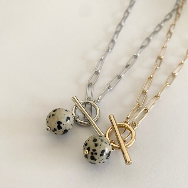 北海道発ブランドのhermanas。 デザインはもちろん、丁寧な手仕事でハイクオリティ。 毎日使いたいアクセサリーが お手頃価格なのもとっても嬉しいです! 美しいアクセサリーをお楽しみください〇 ■サイズ■ 長さ約46cm ■素材■ チェーン:メッキ 天然石:ダルメシアンジャスパー