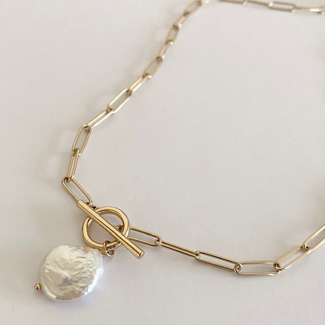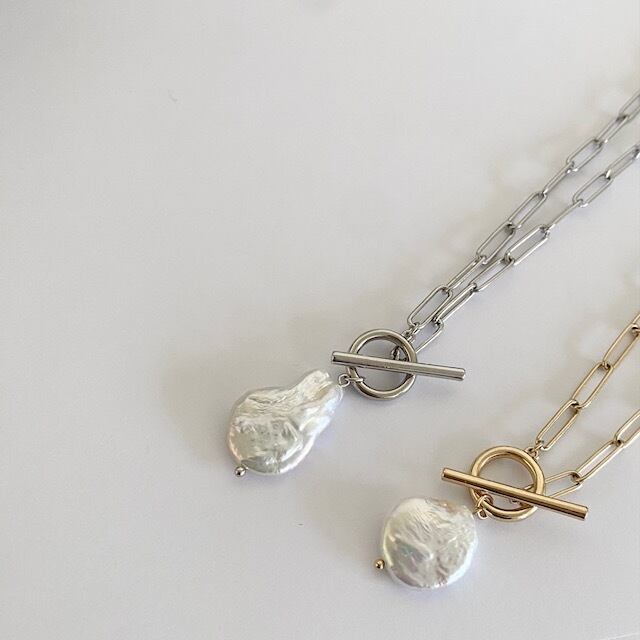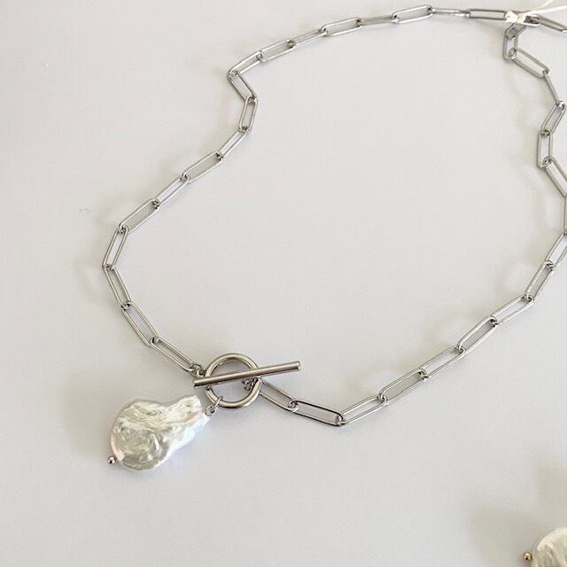 北海道発ブランドのhermanas。 デザインはもちろん、丁寧な手仕事でハイクオリティ。 毎日使いたいアクセサリーが お手頃価格なのもとっても嬉しいです! 美しいアクセサリーをお楽しみください〇 ■サイズ■ 長さ約46cm ■素材■ チェーン:メッキ 天然石:淡水パール ※淡水パールは天然素材の為1点づつカタチが異なります。ご理解頂いたうえでお求めくださいませ。