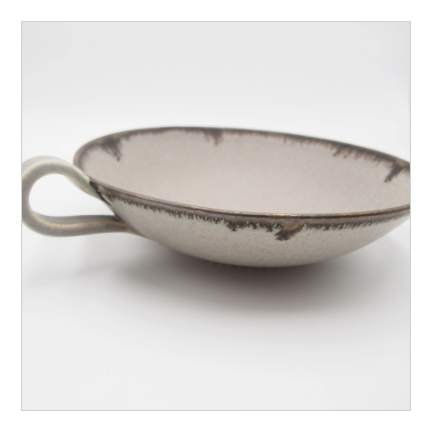 こちらは持ち手がついたスープ皿! 器自体がとても軽いので持ち上げたりするのも簡単です〇 ■サイズ■ 約φ17.5×4.5(cm) ※1点づつ釉薬のかかり具合などで出柄が若干ことなります ※ご使用のモニターによって色の見え方が少し異なる場合があります